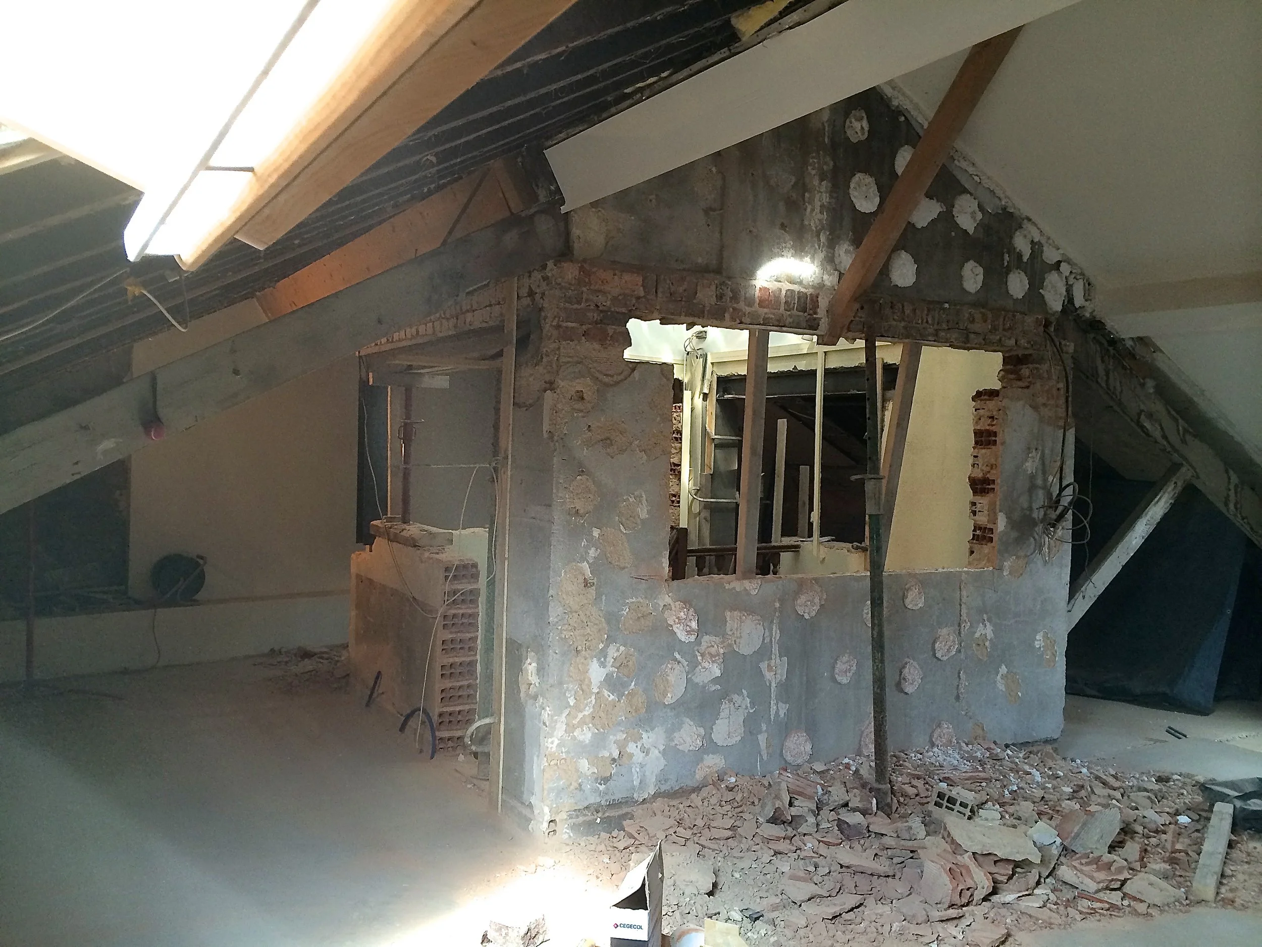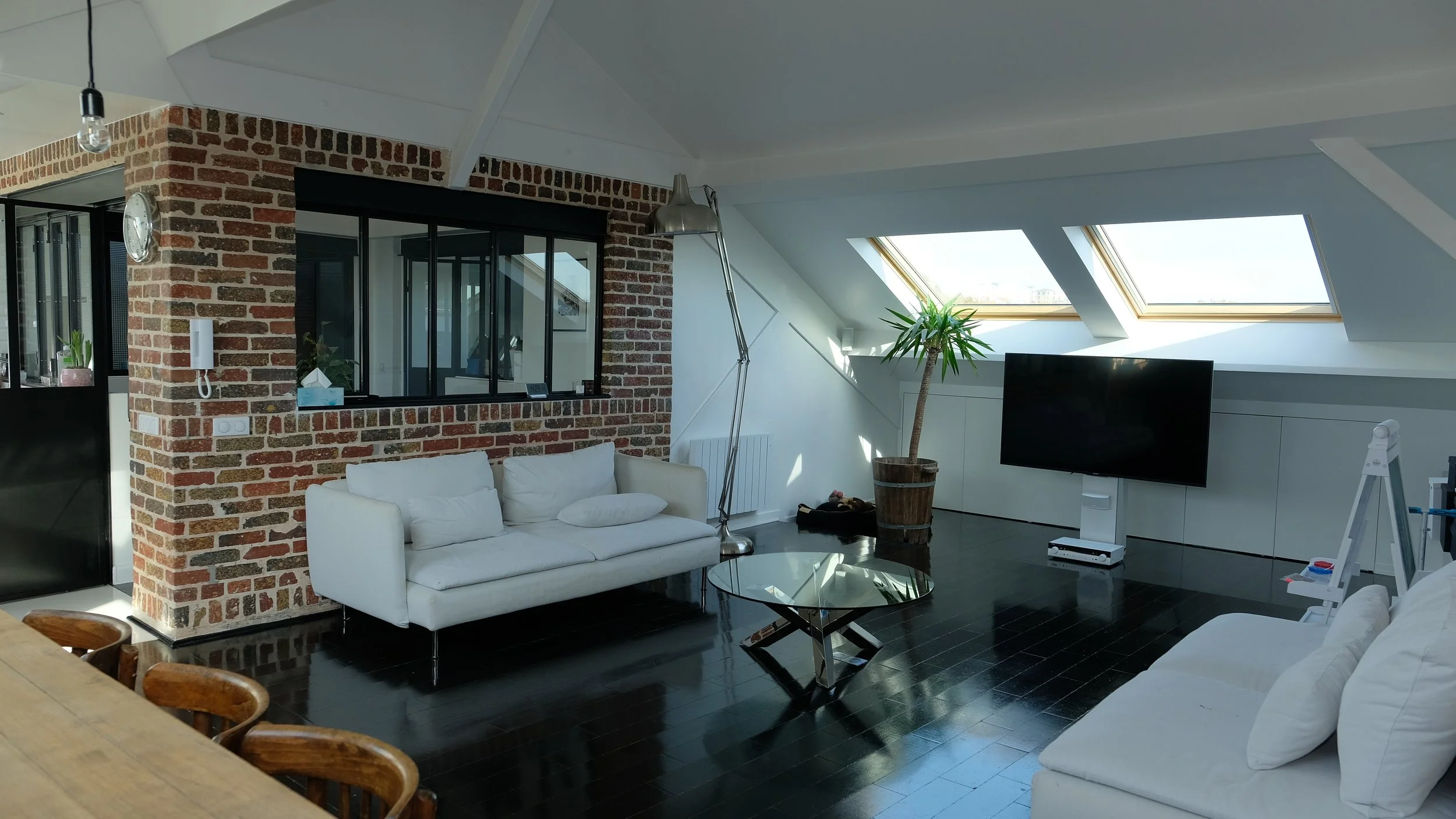 Création d’un loft moderne grâce à la rénovation complète d’un appartement de 48m2 et de la totalité des combles de l’immeuble. Deux niveaux totalement repensés et redistribués avec la création d’un escalier intérieure et d’une trémie centrale.